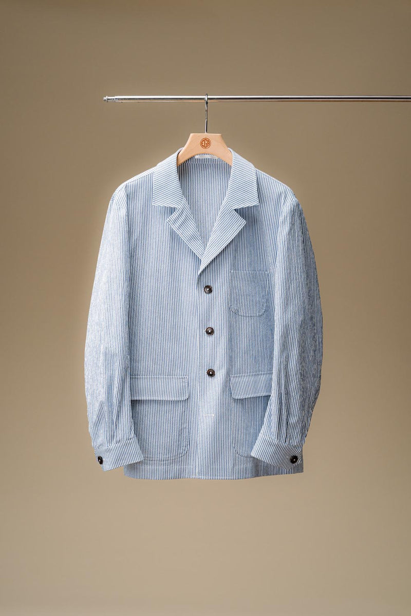 The utility jacket in seersucker is a great alternative to a more classic summer jacket.